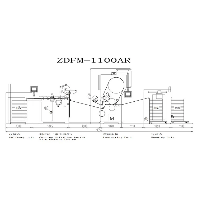 Tilasuunnittelu: Automaattisen kalvonpoistolaminointikoneen kokonaispituus on noin 9,4 metriä, ja irrokekalvon kierrätysrullille on varattava lisää säilytys- ja vaihtotilaa. On suositeltavaa varata vähintään 2 metriä käyttökanavaa käämityspuolelle.