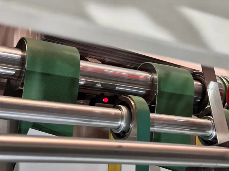 Induktio sähkösilmä, joka tunnistaa paperin pituuden, jos paperin pituus muuttuu, hihna kiihtyy ja vastaanottokoneen ohjauslevy kaatuu ja potkaisee paperin ulos.